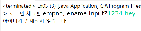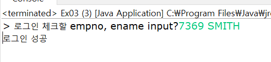 System.out.print("> 로그인 체크할 empno, ename input?");