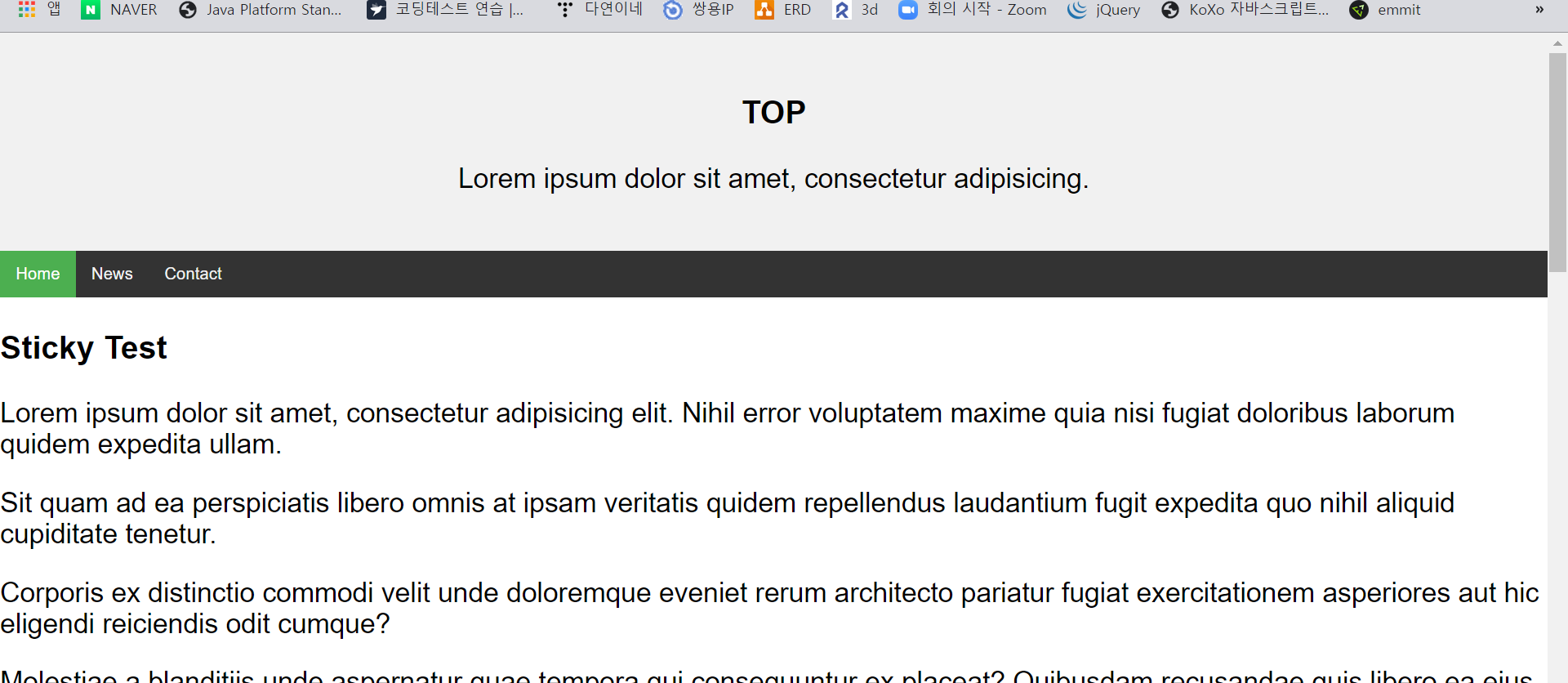 2) 메뉴바가 sticky인 페이지 만들어보기