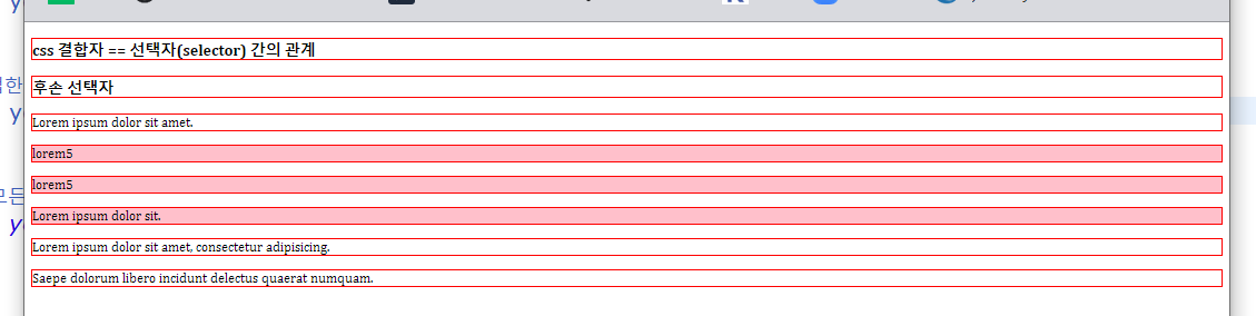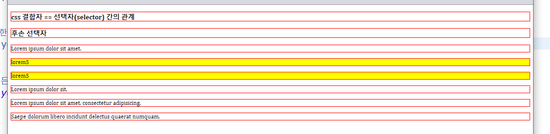 <h3>css 결합자 == 선택자(selector) 간의 관계</h3>