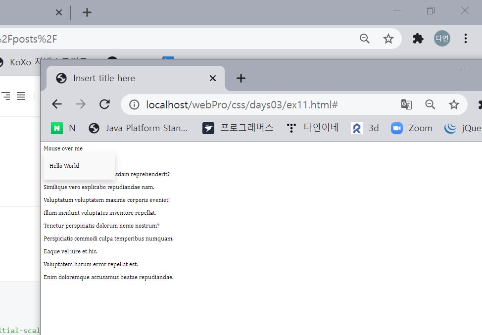 특정 부분에 마우스를 올리면 창이 새로 뜨는 것