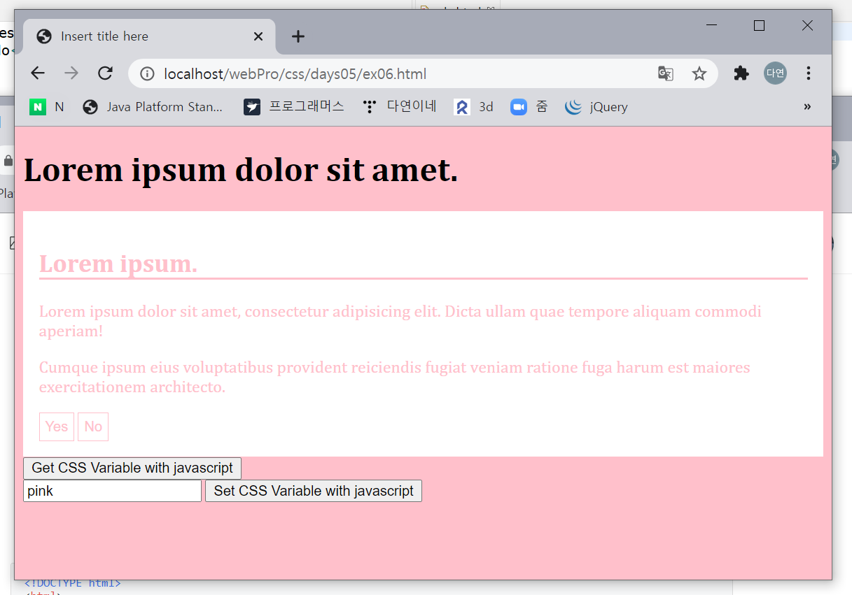 우측 Set CSS Variable ~ 버튼을 누르면 옆의 텍스트 색상으로 배경 색이 변한다.