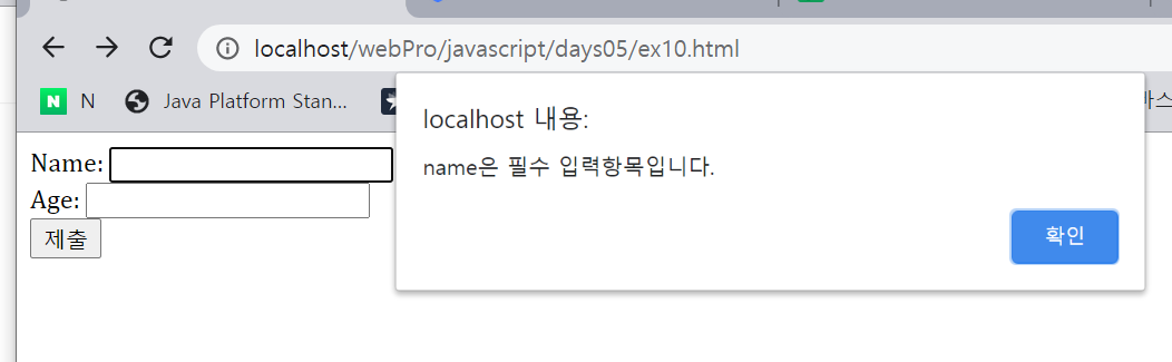 alert("age은 필수 입력항목입니다.");