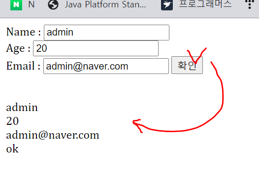 Email : <input type="email" name="email" value="admin@naver.com" />