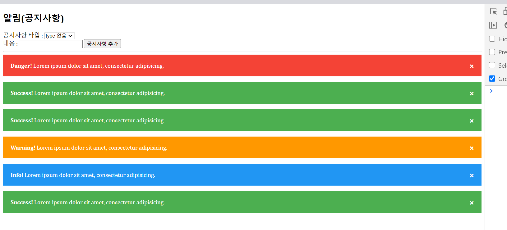 기본적으로 존재했던 모든 공지들을 지운 후, window.onload 될 때 동적으로 추가되도록 해보자.