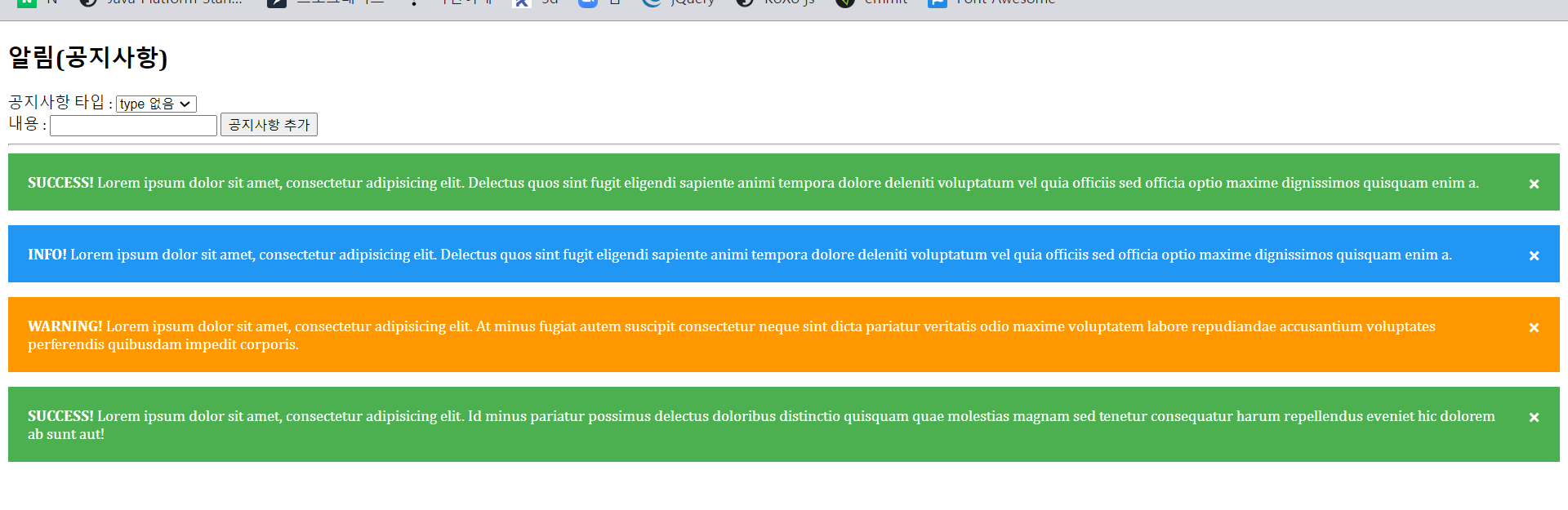 alertDiv.classList.add($("#type").val()); // warning 선택시 warning 들어가 있음