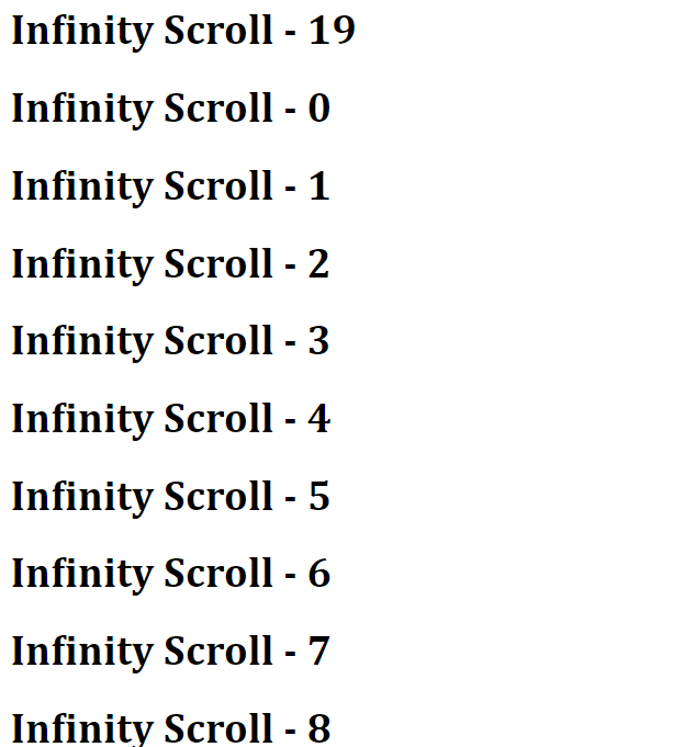 $("<h1>Infinity Scroll - "+i+"</h1>").appendTo("body");