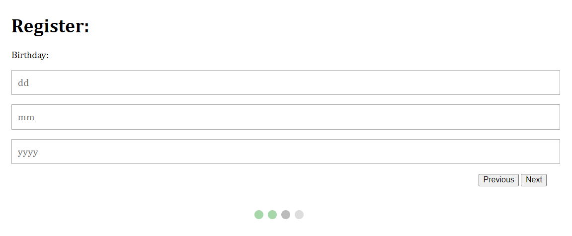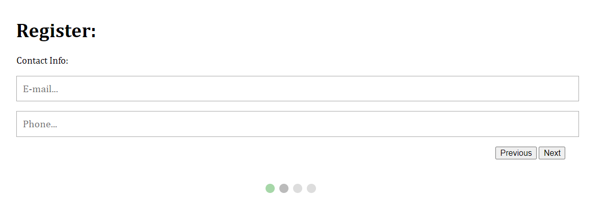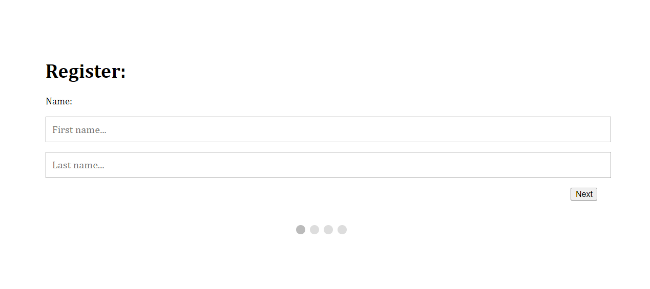 <!-- Circles which indicates the steps of the form: -->