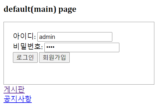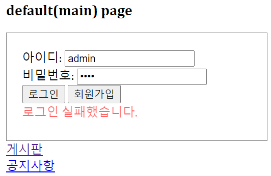 - 로그인 실패 : ex02_default.jsp?error (메인 페이지) 이동
