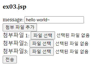 3) ex03. jsp 여러개의 첨부파일을 서블릿 사용해서 처리