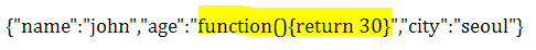 age: 문자열 함수 "function(){return 30;}" -> eval() 함수 사용하면 다시 함수로 변환할 수 있다.