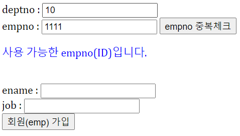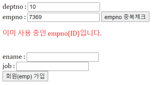 // 요청파라미터로 중복할 체크할 아이디 ( empno 대신)