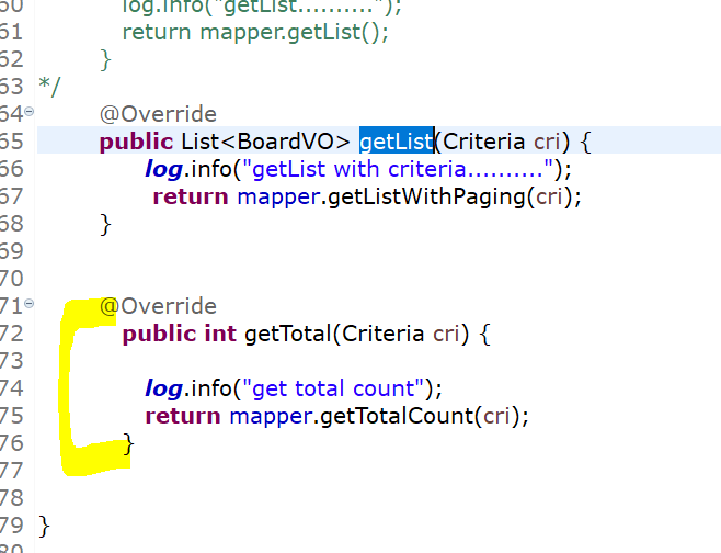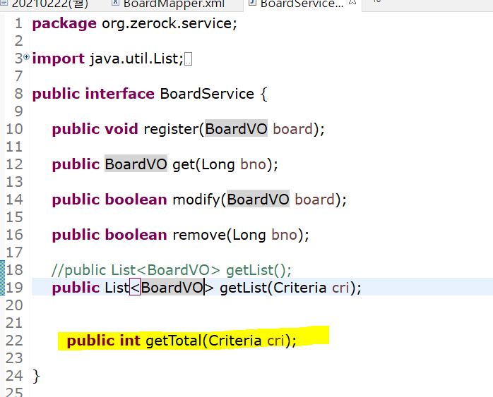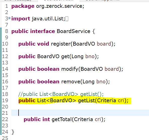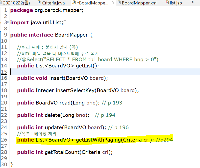 interface BoardMapper에 Criteria 타입을 파라미터로 사용하는 메소드 작성
