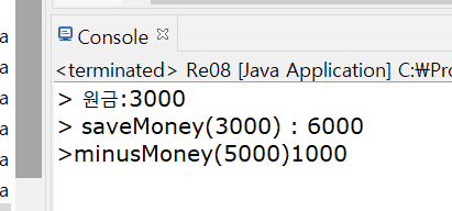 System.out.println("> saveMoney(3000) : " + Re08.myBank.getMoney());