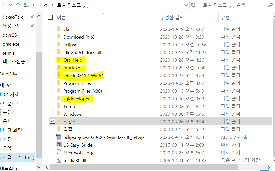 강사님이 주신 Ora_Help까지 설치 완료 후 C드라이브에 몽땅 압축을 풀었다.