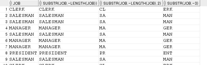 substr함수는 다른 함수와 같이 사용하는 경우도 종종 있다. 다음은 length 함수를 사용한 예시이다.