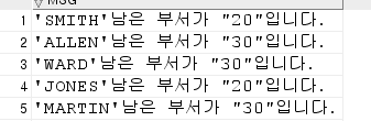 select ''''||ename||'''남은 부서가 "'||deptno||'"입니다.'msg