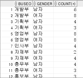 - 오라클11g 부터 추가된 pivot 절을 사용하지 않는다면 decode(), case() + count() + group by()절을 응용하면 됨