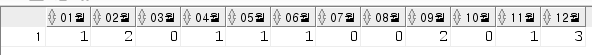 -- 실제 출력 데이터 가로줄로 표기할 열
