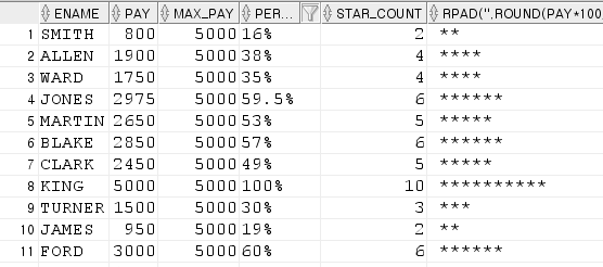 2. emp 에서 decode(), case 사용해서 10번 5%,20번 20%, 30번 15% 급여 인상.