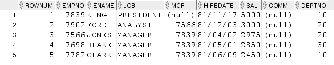 - select dname, ename, hiredate 엄밀히 따지면 밑과 같다