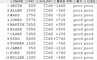 ,decode(sign(pay - avg_pay), -1, 'poor', 'good') "디코드"