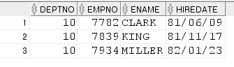 where deptno = 10; --이걸 통째로 추가하겠다