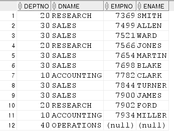 )t full outer join dept d on t.deptno = d.deptno