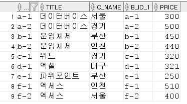 select b.b_id, title, price, sum(p_su) qty --단가