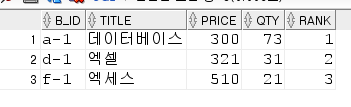 문제) 가장 많이 판매된 책의 정보 (b_id, title, price, qty) 판매량top3