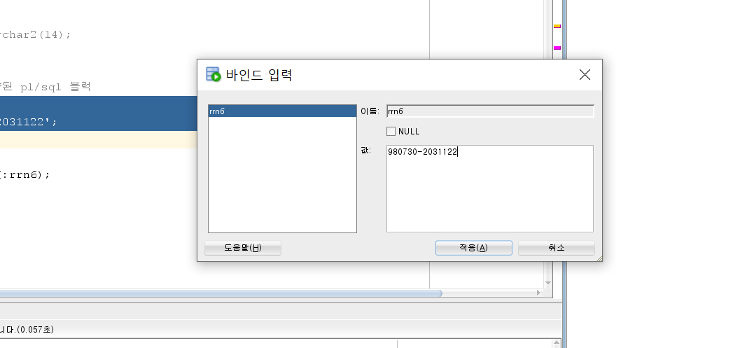 prrn := substr(prrn,0,6); --이놈은 out용으로 사용하고는 앞자리 6자리 짤라서 넘기겠다는의미