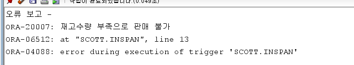 raise_application_error(-20007, '재고수량 부족으로 판매 불가');