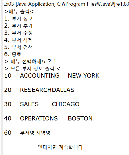 System.out.println("> 모든 부서 정보 출력 <");
